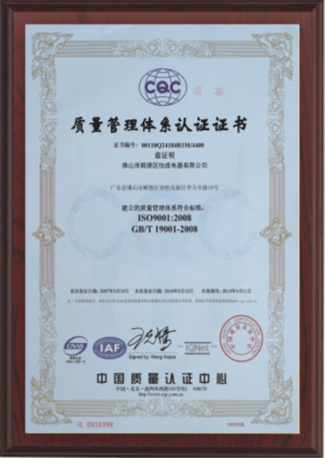 企業(yè)通過IS09001:2000國際體系認(rèn)證,并全面嚴(yán)格按照IS09001:2000體系進(jìn)行運(yùn)營管理。企業(yè)是中國土木工程學(xué)會(huì)燃?xì)夥謺?huì)會(huì)員單位、廣東家電商會(huì)會(huì)員單位、順德燃?xì)饩呱虝?huì)會(huì)員單位、順德家電商會(huì)會(huì)員單位,公司是國家出口產(chǎn)品二類企業(yè),公司主要產(chǎn)品出口北美和歐洲地區(qū),公司一貫堅(jiān)持質(zhì)量、信譽(yù)至上...